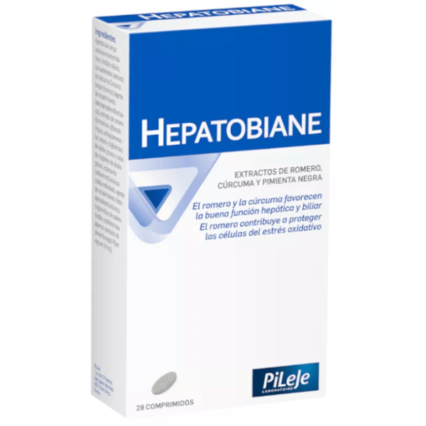 https://www.mifarma.eu/hepatobiane-28-tablets194433312589Hepatobiane 28 tablets<p><strong>Hepatobiane 30 tablets</strong></p><p> Hepatobiane is a food supplement based on turmeric, rosemary and pepper.</p><p> The association of turmeric and rosemary promotes good liver and bile function, and has an antioxidant action. . Turmeric helps promote digestion. Rosemary is interesting for its antioxidant role</p><p> <strong>Ingredients</strong></p><p> Turmeric extract Curcuma longa (roots) (coating agent: methylcellulose), bulking agent: microcrystalline cellulose, dicalcium phosphate and croscarmellose sodium, rosemary extract Rosmarinus officinalis (leaves) (carrier: potato maltodextrins), anti-caking agents: mono-di - triglyceride behenate and magnesium stearate, coating agent: hypromellose, caprylic triglyceride and polydextrose, Piper nigrum black pepper extract (fruit)</p><p> <strong>How to use</strong></p><p> Take 1 to 2 tablets a day with a large glass of water, preferably during meals. It is not suitable for pregnant women and people with gallbladder disorders.</p><p> Store in a cool, dry place</p>https://assets.atida.com/transform/bec67bfb-d6a7-42d0-bb47-02ac8253c26a/Pileje-Hepatobiane-28-Comprimidos?io=transform:extend,width:250,height:25026.99outofstock34.9924.536362636364238Pilejehttps://www.mifarma.eu/media/catalog/product/8/1/f/e/81fe4a9d601924cd0d272f62a75369956142e434_Product_Tile_Thumbnail_Pileje_Hepatobiane_28_Comprimidos.png/Vitamins and Supplements/Vitamins and Supplements/Supplements/Singles' Day: Up to 70% off!2024-09-16T05:45:30+0000