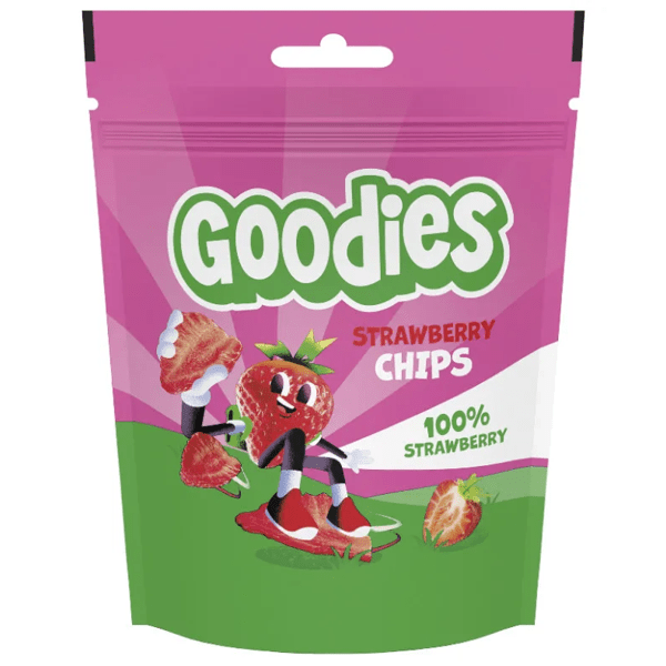 Goodies strawberry chips are a delicious and fun snack made exclusively with natural strawberries, carefully dehydrated to maintain their authentic flavor and crunchy texture .
