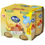 Pack of 4 fruit jars that contain a delicious combination of various fruit flavors, such as: banana, apple, peach, apricot and concentrated orange juice .