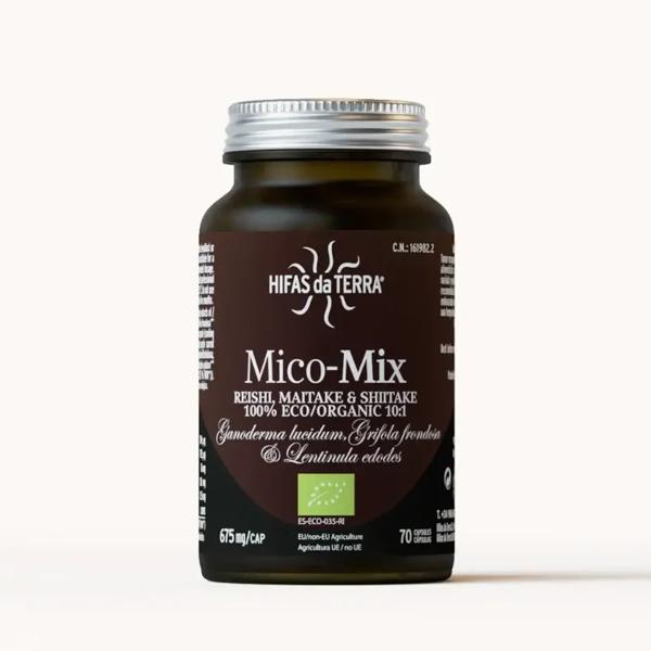 Mico Mix is an organic food supplement formulated in vegetable capsules, which combines 100% pure extracts of three of the most recognized mushrooms in traditional medicine: Reishi, Maitake and Shiitake.