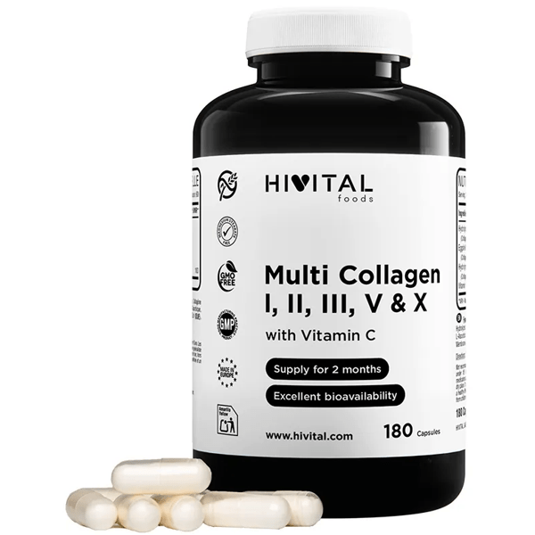 https://www.mifarma.eu/hivital-multicollagen-180-capsules379868084269Hivital MultiCollagen 180 Capsules<p><span style="font-weight: bold;">Hivital MultiCollagen 180 Capsules</span></p><p> <span style="font-weight: bold;">Multi Hydrolyzed Collagen</span> is a food supplement designed to provide a <span style="font-weight: bold;">complete and effective formula,</span> combining high-quality ingredients that promote overall well-being.</p><p> This product includes <span style="font-weight: bold;">hydrolyzed bovine collagen in peptides, hydrolyzed chicken collagen and Ovomet/Ovoderm eggshell membrane</span> , which provide various types of collagen essential for the <span style="font-weight: bold;">health of connective tissues, skin, hair and joints</span> .</p><p> Each dose, consisting of 3 capsules, provides <span style="font-weight: bold;">1500 mg of bovine collagen type I and III,</span> <span style="font-weight: bold;">60 mg of eggshell membrane type I, V and X, and 42 mg of chicken collagen type II, supplemented with 80 mg of vitamin C,</span> which contributes to the normal formation of collagen in the body and increases its bioavailability.</p><p> Furthermore, it stands out for its commitment to quality, as <span style="font-weight: bold;">it contains no magnesium stearate, dioxides, sugars, preservatives, colorings or added flavors</span> , making it a safe and healthy option for consumers.</p><p> Multi Hydrolyzed Collagen is <span style="font-weight: bold;">gluten-free, lactose-free, soy-free, and non-GMO,</span> making it suitable for a wide range of people with different dietary needs. Manufactured in Spain, it meets the highest quality standards, ensuring that each capsule delivers the expected benefits. Hivital Foods is registered with AESAN, demonstrating its commitment to consumer health and well-being.</p>https://assets.atida.com/transform/69dcae45-7fea-4da1-b1a4-7bdad24f78e8/Hivital-MultiCollagen-180-Capsulas?io=transform:extend,width:250,height:25019.99instock2318.172726272727133.01Hivitalhttps://www.mifarma.eu/media/catalog/product/1/e/b/d/1ebd986569a33a48e8229315712e00169e14600e_Hivital_MultiCollagen_180_Capsulas.png/Vitamins and Supplements/Supplements/Bones, Joints, and Muscles/Vitamins and Supplements/Supplements/Nails and skin/Vitamins and Supplements/Vitamins and Supplements/Minerals/Vitamins and Supplements/Supplements/Vitamins and Supplements/Vitamins (A-K)/Nutricosmetics2026-02-21T00:54:21+0000