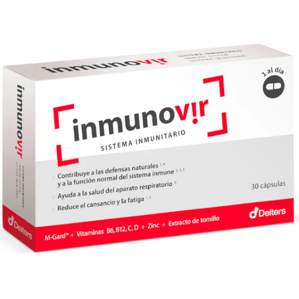 https://www.mifarma.eu/immunovir-30-capsules758231137261Immunovir 30 Capsules<p><span style="font-size: 13px; font-weight: bold;">Immunovir 30 Capsules</span></p><p> This dietary supplement is the key to a <span style="font-weight: bold;">robust and healthy immune system.</span></p><p> Designed to <span style="font-weight: bold;">support and strengthen the body's natural defenses</span> , this specially formulated formula is essential for those seeking to maintain <span style="font-weight: bold;">perfect balance and an effective response to external aggressions such as viruses, bacteria, fungi, or parasites.</span></p><p> The unique combination of <span style="font-weight: bold;">vitamins, minerals, beta-glucans and thyme extract</span> works synergistically to <span style="font-weight: bold;">strengthen the health of the respiratory system,</span> while <span style="font-weight: bold;">combating fatigue and feelings of weakness.</span></p><p> With a <span style="font-weight: bold;">boosted immune system,</span> you'll be better prepared to <span style="font-weight: bold;">face any challenge,</span> ensuring a faster recovery and less severe symptoms.</p><p> Give your body the support it deserves, every day.</p><p> <span style="font-weight: bold;">Suitable for ages 12 and up.</span></p>https://assets.atida.com/transform/65071863-57db-4b53-8165-ca2dd40f3585/Inmunovir-30-Capsulas?io=transform:extend,width:250,height:25016.99instock18.9815.445453545455101.99Inmunovirhttps://www.mifarma.eu/media/catalog/product/f/0/c/1/f0c192e0968c60d7034b2b494b151b7bd29f4cb0_Inmunovir_30_Capsulas.png/Vitamins and Supplements/Vitamins and Supplements/Minerals/Vitamins and Supplements/Supplements/Vitamins and Supplements/Vitamins (A-K)2025-10-11T00:07:15+0000