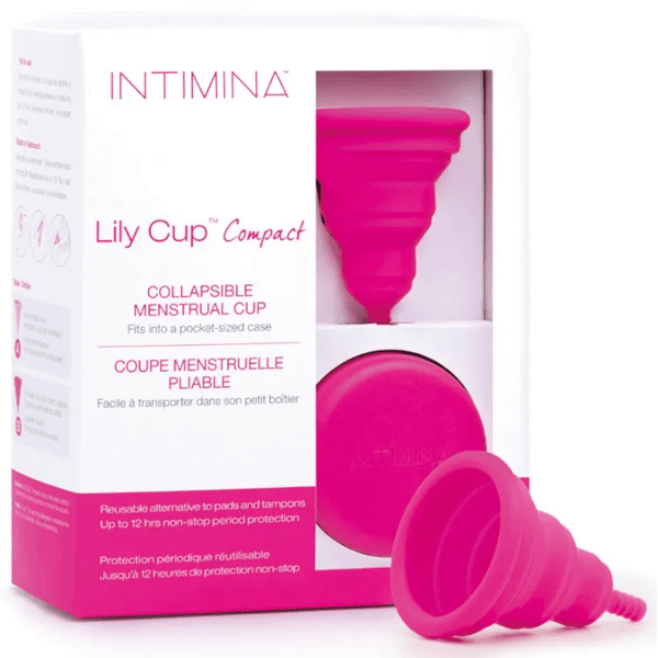 Description ico-chevron-down The menstrual cup Intimin compact is made of ultrasoft and reusable medical grade silicone. Its compact, foldable design allows you to take it wherever you need comfortably in its protective case.