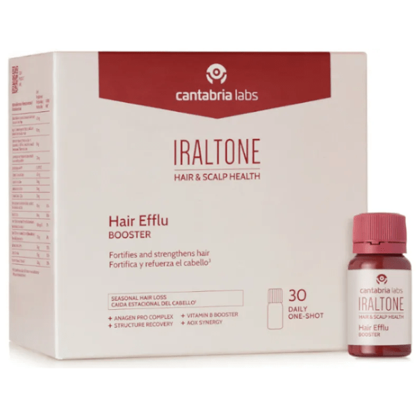 https://www.mifarma.eu/iraltone-hair-efflu-booster-30-drinkable-single-doses317940796314Iraltone Hair Efflu Booster 30 Drinkable Single Doses<p><span style="font-size: 13px; font-weight: bold;">Iraltone Hair Efflu Booster 30 Drinkable Single Doses</span></p><p> <span style="font-weight: bold;">To combat hair loss effectively!</span></p><p> This advanced treatment not only addresses the symptoms, but goes to the root of the problem, <span style="font-weight: bold;">strengthening hair follicles and restoring the hair growth cycle</span> for visibly <span style="font-weight: bold;">thicker, stronger, and healthier</span> <span style="font-weight: bold;">hair</span> .</p><p> Specifically formulated for those <span style="font-weight: bold;">facing acute, seasonal hair loss,</span> this unique formula focuses on revitalizing your hair from within.</p><p> Composed of:</p><p> <span style="font-weight: bold;">- Anagen Pro Complex,</span> with <span style="font-weight: bold;">pea and cumin extracts</span> , optimizes the growth phase of your hair</p><p> <span style="font-weight: bold;">- Structure Recovery Complex</span> provides the essential components to <span style="font-weight: bold;">repair and strengthen the hair structure.</span></p><p> <span style="font-weight: bold;">- Vitamin B and collagen precursors</span> come together in this perfect synergy, ensuring that each strand of hair is intensely nourished and strengthened from the root.</p><p> - Exclusive <span style="font-weight: bold;">AOX Synergy Blend, which includes vitamins C, E, and turmeric,</span> provides powerful <span style="font-weight: bold;">antioxidant and anti-inflammatory protection,</span> essential for keeping your hair and scalp in optimal condition against environmental adversity and stress.</p><p> With its irresistible <span style="font-weight: bold;">piña colada flavor</span> , this drinkable supplement is the most pleasant way to take care of your hair and nails.</p><p> Suitable for <span style="font-weight: bold;">vegans and gluten and lactose free.</span></p>https://assets.atida.com/transform/0443450b-169f-40c2-8e08-4b5f6d3a22f6/Iraltone-Hair-Efflu-Booster-30-Monodosis-Bebibles?io=transform:extend,width:250,height:25037.99instock49.9534.5363626363642411.96Cantabria Labshttps://www.mifarma.eu/media/catalog/product/2/c/f/d/2cfd05ae6a290deb5c58c2e9d900b23af3d21412_Iraltone_Hair_Efflu_Booster_30_Monodosis_Bebibles.png/Health and Hygiene/Hair Care/Anti-Hair Loss/Health and Hygiene/Health and Hygiene/Hair Care/Vitamins and Supplements/Vitamins and Supplements/Minerals/Vitamins and Supplements/Supplements/Vitamins and Supplements/Vitamins (A-K)/Mifarma Days NO/10% off Iraltone2025-07-24T23:41:29+0000