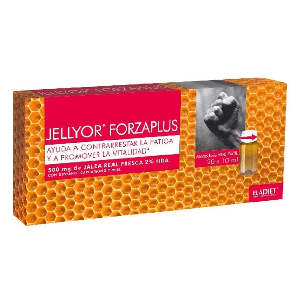 https://www.mifarma.eu/jellyor-royal-jelly-forzaplus-eladiet-20ml-single-dose400148577430Jellyor Royal Jelly Forzaplus Eladiet 20ml single dose<p><b>Jellyor Forzaplus Eladiet 20ml single dose</b></p><p> Solution-based <span style= text-decoration: underline; >Fresh Royal Jelly</span> , not dehydrated and containing a minimum of 2% of HDA.</p><p> Help to <b>counteract fatigue and to promote vitality</b> .</p><p> 500mg royal jelly</p><p> <b>how to use</b></p><p> Take 1 dose a day, preferably in the morning before breakfast. Can be taken directly or mixed with infusions, fruit juices or water.</p>https://assets.atida.com/transform/e055b7e1-6f82-468b-957c-3fed2b6498a6/Jellyor-Jalea-Real-Forzaplus-Eladiet-20-monodosis-de-10-ml?io=transform:extend,width:250,height:25013.99outofstock31.0812.7181808181825517.09Eladiethttps://www.mifarma.eu/media/catalog/product/d/9/b/0/d9b026b5b0b6d95f219fe84631d58daeb07390bb_Product_Tile_Thumbnail_Jellyor_Jalea_Real_Forzaplus_Eladiet_20_monodosis_de_10_ml.png/Royal Jelly/cyber_monday_pt_int/Vitamins and Supplements/Mifarma Days NO/Up to 55% off Eladiet2024-09-16T05:55:27+0000