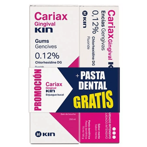 https://www.mifarma.eu/kin-cariax-gingival-rinse-250-ml-paste-75-ml269677264466Kin Cariax Gingival Rinse 250 ml + Paste 75 mlComprehensive oral care treatment. Contains: Gingival Rinse (250 ml) + Toothpaste (75 ml) FREE. Its exclusive formulas with chlorhexidine digluconate and fluoride prevent plaque buildup, care for sensitive gums, and prevent tooth decay.https://assets.atida.com/transform/0aeccd3f-076b-4b15-bb9e-91f1fb3ea81b/Kin-Cariax-Enjuage-Gingival-250-ml-Pasta-75-ml?io=transform:extend,width:250,height:2507.99instock8.996.603304785124111Kinhttps://www.mifarma.eu/media/catalog/product/a/0/5/d/a05dcbb8735d761dca4d9495a7a5aef0d12f3dc8_Product_Tile_Thumbnail_Kin_Cariax_Enjuage_Gingival_250_ml_Pasta_75_ml.png/Health and Hygiene/Mouthwashes/Health and Hygiene/Toothpaste/Health and Hygiene2024-09-16T06:39:04+0000