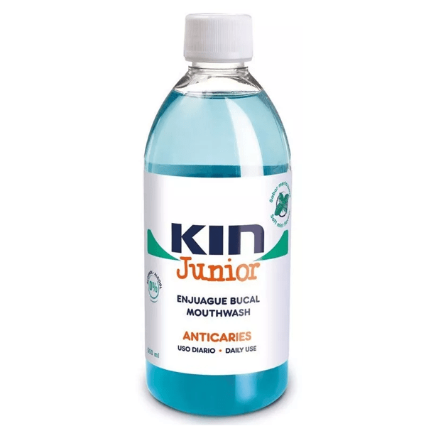 https://www.mifarma.eu/kin-junior-mild-mint-mouthwash-500-ml376458566694Kin Junior Mouthwash Mild Mint 500 ml<p><strong>Kin Junior Mouthwash Mild Mint 500ml</strong></p><p> Mouthwash with a pleasant, mild mint flavor specially formulated for <strong>daily oral hygiene in children aged 6 to 12 years.</strong></p><p> Its formula with a fluoride concentration of 226ppm F provides protection against cavities and dental plaque.</p><p> 0% alcohol.</p><p> Gluten free.</p><p> Pleasant mint flavor.</p>https://assets.atida.com/transform/959d291a-bc1d-4a8e-aed2-afa8262cf464/Enjuague-Bucal-Kin-Junior-Menta-Suave-500ml?io=transform:extend,width:250,height:2504.99instock8.414.1239659421488413.42Kinhttps://www.mifarma.eu/media/catalog/product/b/0/c/1/b0c1e052bee15a7b849a7dd243ebeb14e06180b2_Product_Tile_Thumbnail_Enjuague_Bucal_Kin_Junior_Menta_Suave_500ml.png/Health and Hygiene/Health and Hygiene/Children Dental Care/Mouthwash for Children/Health and Hygiene/Children Dental Care/Singles' Day: Up to 70% off!2024-10-18T23:47:55+0000