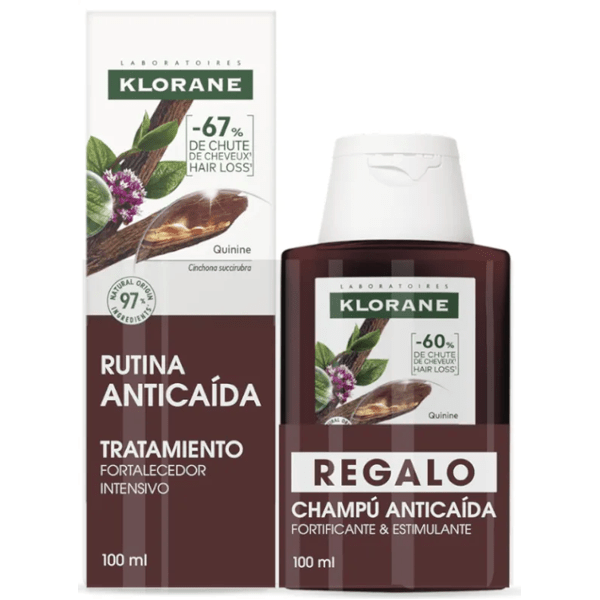 https://www.mifarma.eu/klorane-anti-hair-loss-serum-100-ml-shampoo-100-ml158817783914Klorane Anti-Hair Loss Serum 100 ml + Shampoo 100 ml<p><span style="font-weight: 700;">Klorane Anti-Hair Loss Serum 100 ml + Shampoo 100 ml</span></p><p> Fortifying serum with an active complex of keratin, quinine and B vitamins.<br></p><p> It is specially created to treat reactive hair loss and devitalized hair.</p><p> Quinine is an active ingredient with proven anti-hair loss properties.</p><p> This treatment provides comprehensive hair care, from roots to tips.</p><p> It stimulates the growth of hair follicles and activates the genes responsible for keratinization at the origin of the hair.</p><p> The pack includes <span style="font-weight: 700;">shampoo</span> with a very gentle, detangling and volumizing cleansing base.<br></p><p> Quinine extract, together with the vitamin B complex, makes this shampoo a true concentrate of strength, which restores vigour and resistance to the hair.</p><p> It can complement other anti-hair loss treatments, as it stimulates hair growth.</p><p> It does not contain silicones.</p>https://assets.atida.com/transform/2c1baf30-ad8e-429c-8129-3f513ea2529c/Klorane-Tratamiento-Anticaida-100-ml-Champu-100-ml?io=transform:extend,width:250,height:25044.99instock54.937.181817181818189.91Kloranehttps://www.mifarma.eu/media/catalog/product/5/9/5/1/59516a01bd98bede8239da14fb1f7c61bd73c62c_Klorane_Tratamiento_Anticaida_100_ml_Champu_100_ml.png/Atida Cash 5%/Health and Hygiene/Hair Care/Anti-Hair Loss/Health and Hygiene/Health and Hygiene/Hair Care2025-01-14T00:42:12+0000
