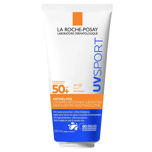 https://www.mifarma.eu/la-roche-posay-anthelios-uvsport-lotion-spf50-200-ml 207801730500 La Roche Posay Anthelios UVSPORT Lotion SPF50+ 200 ml <p><span style="font-weight: bold;">La Roche Posay Anthelios UVSPORT Lotion SPF50+ 200 ml</span></p><p> SPF 50+ sunscreen resistant to sweat and humidity.</p><p> <span style="font-weight: bold;">BENEFITS</span></p><p> - Ideal for those seeking an advanced solution for effective and long-lasting sun protection during outdoor activities.</p><p> - This lotion is specially formulated to offer very high UV protection.</p><p> - In addition to its powerful sun protection, the formula includes key ingredients such as vitamin E and La Roche-Posay thermal spring water, which contribute to skin hydration while protecting it from oxidative stress caused by sun exposure.</p><p> - <span style="font-weight: bold;">Wetskin technology</span> allows it to be applied even on wet or sweaty skin, making it especially convenient in warm climates or during water activities.</p><p> - With 16 hours of antioxidant action and hydration that lasts up to 24 hours, this lotion not only prevents sunburn, but also protects the skin from discomfort caused by dehydration due to chlorine and salt in the water.</p><p> - In addition, it is hypoallergenic and has been dermatologically tested, which ensures its high tolerance on sensitive skin.</p> https://assets.atida.com/transform/c8c86958-3277-4c98-8066-317a469c2e8c/La-Roche-Posay-Anthelios-UVSPORT-Locion-SPF50-200-ml?io=transform:extend,width:250,height:250 22.99 instock 37.9 18.999999 39 14.91 La Roche Posay https://www.mifarma.eu/media/catalog/product/a/3/e/8/a3e8cc50f0ce69979ccc95ba26bedb662dff88fb_La_Roche_Posay_Anthelios_UVSPORT_Locion_SPF50_200_ml.png /Health and Hygiene /Health and Hygiene/Sun Protection and Cream /Health and Hygiene/Sun Protection and Cream/Body Sun Protection /3€ off 1st unit La Roche Posay 2026-02-13T00:48:57+0000