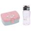 Lunch set consisting of a lunch box and a 460 ml bottle in pink with a chinchilla print.
