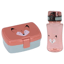 Lunch set consisting of a lunch box and a 460 ml bottle in coral with the face of a cute fox printed on it.