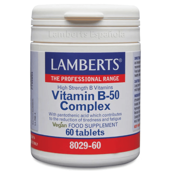 https://www.mifarma.eu/lamberts-complex-of-vitamins-b-50-60-tablets978553865719Lamberts Vitamin B-50 Complex 60 Tablets<p><span style="font-weight: bold;">Lamberts Vitamin B-50 Complex 60 Tablets</span></p><p> Dietary supplement that provides <span style="font-weight: bold;">50 mg of Thiamine, Riboflavin, Niacin, Pantothenic Acid, Inositol and Choline Bitartrate, along with 50 µg of Vitamin B12 and Biotin, 5 mg of Pyridoxine and 400 µg of folic acid.</span></p><p> These B complex vitamins work together to <span style="font-weight: bold;">contribute to normal energy metabolism, the functioning of the nervous system, the maintenance of healthy skin, the formation of blood cells, and the reduction of tiredness and fatigue.</span></p><p> This product is ideal for people who need an additional supply of B vitamins, especially during times of physical or mental stress.</p>https://assets.atida.com/transform/daf1516d-ee3b-4775-ac24-32125968762f/Complejo-de-Vitaminas-B-50?io=transform:extend,width:250,height:25017.99instock23.1516.354544454545225.16Lambertshttps://www.mifarma.eu/media/catalog/product/e/f/d/1/efd1f10a6e7628ba38f9a6c9f9defa7814583c65_Complejo_de_Vitaminas_B_50.png/Vitamins and Supplements/Vitamins and Supplements/Vitamins (A-K)/Vitamins and Supplements/Supplements/Blood Circulation/Vitamins and Supplements/Supplements2024-09-16T06:26:49+0000