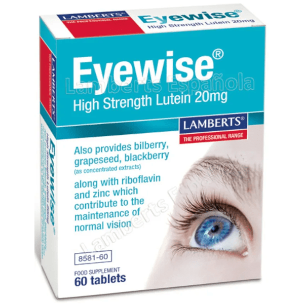 https://www.mifarma.eu/lamberts-eyewiser-60-tablets692311089068Lamberts Eyewise 20mg Lutein 60 Tablets<p><span style="font-weight: bold;">Lamberts Eyewise 20mg Lutein 60 Tablets</span></p><p> <span style="font-weight: bold;">Lamberts Eyewise</span> is a supplement that contains a <span style="font-weight: bold;">concentration of lutein and zeaxanthin,</span> essential nutrients for <span style="font-weight: bold;">visual and eye health.</span></p><p> In addition, it includes <span style="font-weight: bold;">zinc and vitamin B2,</span> which contribute to <span style="font-weight: bold;">cell protection and normal metabolism.</span></p><p> This product provides <span style="font-weight: bold;">standardized extracts of bilberry, blackberry and grape seed,</span> known for their <span style="font-weight: bold;">beneficial properties for eyesight.</span></p><p> Lutein is a yellow carotenoid that is not produced in the body and must be obtained from the diet, while zeaxanthin is also abundant in dark green vegetables.</p><p> Lamberts Eyewise 20mg Lutein is indicated for those who <span style="font-weight: bold;">wish to care for and protect the health of their eyes,</span> especially those who spend a lot of time in front of screens or are exposed to intense light.</p>https://assets.atida.com/transform/5b954a1c-3e01-45d5-aae7-e5a2c1367feb/Eyewise-Luteina-Zeaxantina-Plantas-Vit-Min?io=transform:extend,width:250,height:25035.99instock48.3732.7181808181822612.38Lambertshttps://www.mifarma.eu/media/catalog/product/a/b/8/0/ab801f73ccb0e4d0ad77cc5a59c7de70d5838f3b_Eyewise_Luteina_Zeaxantina_Plantas_Vit_Min.png/Health and Hygiene/Optics/Eye Vitamins/Health and Hygiene/Health and Hygiene/Optics/Vitamins and Supplements/Vitamins and Supplements/Minerals/Vitamins and Supplements/Vitamins (A-K)2024-09-16T06:10:58+0000