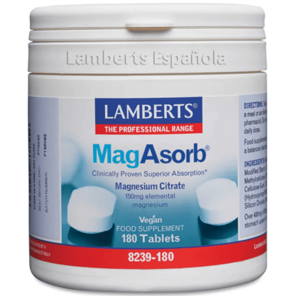 https://www.mifarma.eu/lamberts-magasorbr-180-tablets331534265903Lamberts MagAsorb Magnesium Citrate 150mg 180 Tablets<p><span style="font-weight: bold;">Lamberts MagAsorb Magnesium Citrate 150mg 180 Tablets</span></p><p> <span style="font-weight: bold;">MagAsorb provides 150 mg of pure, highly bioavailable magnesium citrate</span> per tablet.</p><p> This compound is easily absorbed by the body and has numerous scientific studies that support its effectiveness.</p><p> Compared to other magnesium compounds, MagAsorb has demonstrated <span style="font-weight: bold;">superior absorption</span> in testing.</p><p> The magnesium contained in MagAsorb contributes to the <span style="font-weight: bold;">normal functioning of the nervous system, muscles and psychological function.</span></p><p> It also helps with <span style="font-weight: bold;">normal energy metabolism, the reduction of tiredness and fatigue, normal protein synthesis, and the maintenance of normal bones and teeth</span> .</p><p> The supplement is suitable for <span style="font-weight: bold;">vegetarians and vegans, is free of GMOs and various common allergens.</span></p>https://assets.atida.com/transform/2615229c-6f77-4fab-8406-b186236a3f03/MagAsorb-Magnesio-150-mg-como-citrato?io=transform:extend,width:250,height:25031.99instock39.5329.081817181818197.54Lambertshttps://www.mifarma.eu/media/catalog/product/0/2/e/c/02ecd955453087c94c8c7b791fefa6f390e07f1d_MagAsorb_Magnesio_150_mg_como_citrato.png/Vitamins and Supplements/Vitamins and Supplements/Minerals/Vitamins and Supplements/Supplements/Vitamins and Supplements/Supplements/Bones, Joints, and Muscles/Vitamins and Supplements/Supplements/Emotional Balance and Relaxation2024-09-16T05:52:00+0000