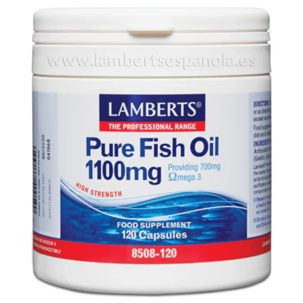 https://www.mifarma.eu/lamberts-pure-fish-oil-1-0-0-mg-tablets130171869511Lamberts Pure Fish Oil 1100mg 120 Capsules<p><span style="font-weight: bold;">Lamberts Pure Fish Oil 1100mg 120 Capsules</span></p><p> Food supplement that provides <span style="font-weight: bold;">essential omega-3 fatty acids</span> for the body.</p><p> It contains <span style="font-weight: bold;">700mg of omega-3 per capsule, including 355mg of EPA and 237mg of DHA</span> , which contribute to <span style="font-weight: bold;">normal heart function, brain function and vision.</span></p><p> It is rigorously purified to meet and exceed the safety standards set by the European Commission and the Global Organization for EPA and DHA Omega 3 (GOED), with Friend of the Sea certification.</p><p> Furthermore, it is <span style="font-weight: bold;">protected from oxidation by containing natural vitamin E</span> , and its capsule is easy to swallow.</p><p> This product is <span style="font-weight: bold;">GMO-free and not tested on animals.</span></p>https://assets.atida.com/transform/1942c05c-907a-45e4-a4d6-6ba08f0e6a4b/Lamberts-Aceite-de-Pescado-Puro-1100mg-120-Capsulas?io=transform:extend,width:250,height:25039.99instock51.5336.3545444545452211.54Lambertshttps://www.mifarma.eu/media/catalog/product/5/f/b/d/5fbd649f0819595bc600037b480b6cd244e786dd_Lamberts_Aceite_de_Pescado_Puro_1100mg_120_Capsulas.png/Vitamins and Supplements/Supplements/Cardiovascular/Vitamins and Supplements/Vitamins and Supplements/Supplements/Vitamins and Supplements/Vitamins (A-K)2024-09-16T05:42:31+0000