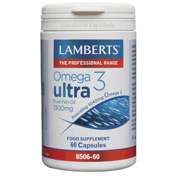https://www.mifarma.eu/lamberts-ultra-omega-3-00mg-60-tablets-pure-fish-oil257355219556Lamberts Omega 3 Ultra Pure Fish Oil 1300mg 60 Tablets<p><span style="font-weight: bold;">Lamberts Omega 3 Ultra Pure Fish Oil 1300mg 60 Tablets</span></p><p> Dietary supplement rich in <span style="font-weight: bold;">omega-3 fatty acids (EPA and DHA) essential for general well-being</span> .</p><p> These nutrients help <span style="font-weight: bold;">maintain normal blood pressure, contribute to heart function, brain function, and vision.</span></p><p> This product has been rigorously purified to ensure its safety and quality, and has certifications that support its purity.</p><p> Furthermore, it is <span style="font-weight: bold;">free of common allergens and has not been tested on animals</span> .</p><p> Pure Fish Oil comes in easy-to-swallow softgel capsules with a significantly reduced fishy smell and taste.</p>https://assets.atida.com/transform/ace9fd47-cf25-42e6-8d1b-92b185b10093/Omega-3-Ultra-Aceite-de-Pescado-puro-1300-mg?io=transform:extend,width:250,height:25035.99instock43.9932.718180818182188Lambertshttps://www.mifarma.eu/media/catalog/product/a/1/a/d/a1ad47bb655a2771e8e0d319e5ad771098248042_Omega_3_Ultra_Aceite_de_Pescado_puro_1300_mg.png/Vitamins and Supplements/Supplements/Cardiovascular/Vitamins and Supplements/Vitamins and Supplements/Supplements2024-09-16T05:48:13+0000