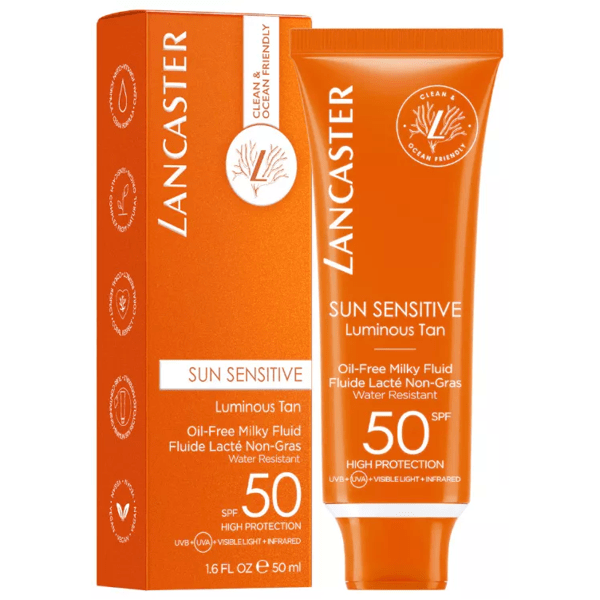 https://www.mifarma.eu/lancaster-sun-sensitive-oil-free-milky-fluid-spf50-50-ml987349584395Lancaster Sun Sensitive Oil-Free Milky Fluid SPF50 50 ml<p><span style="font-weight: bold;">Lancaster Sun Sensitive Oil-Free Milky Fluid SPF50 50 ml</span></p><p> SPF 50 sun fluid to protect <span style="font-weight: bold;">sensitive skin</span> from the sun without leaving a greasy residue or clogging pores.</p><p> This <span style="font-weight: bold;">oil-free formula</span> provides high protection against UVA and UVB rays, essential to prevent sunburn and premature skin aging.</p><p> Its light, fast-absorbing texture glides smoothly over the skin, leaving it soft, matte, and shine-free.<br></p>https://assets.atida.com/transform/0d08ebba-d160-496d-8284-3d990ffba6f8/Lancaster-Sun-Sensitive-Oil-Free-Milky-Fluid-Spf50-50-ml?io=transform:extend,width:250,height:25021.99outofstock28.7118.173552719008236.72Lancasterhttps://www.mifarma.eu/media/catalog/product/d/6/0/d/d60d32e841febb38456dc6f15d38c2408a2e6b67_Product_Tile_Thumbnail_Lancaster_Sun_Sensitive_Oil_Free_Milky_Fluid_Spf50_50_ml.png/Luxury cosmetics/Health and Hygiene/Health and Hygiene/Sun Protection and Cream/Health and Hygiene/Sun Protection and Cream/Facial Sun Protection2026-04-01T00:35:34+0000