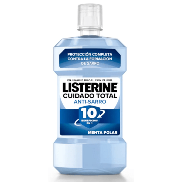 https://www.mifarma.eu/listerine-advanced-anti-tartar-mouthwash-500-ml150488732285Listerine Total Care Anti-Tartar Mouthwash Polar Mint 500 ml<p><span style="font-weight: 700;">Listerine Total Care Anti-Tartar Mouthwash Polar Mint 500 ml</span></p><p> <span style="font-weight: bold;">Brushing alone isn't enough to remove all plaque and keep your teeth tartar-free</span> . Listerine Total Care Anti-Tartar Polar Mint is the perfect complement to your daily routine: its <span style="font-weight: bold;">advanced, clinically proven formula helps reduce plaque, prevent tartar buildup, and keep your teeth naturally white</span> , providing a clean feeling that lasts three times longer.</p><p> <span style="font-weight: bold;">Used twice a day</span> , this mouthwash protects against one of the main causes of gum inflammation, <span style="font-weight: bold;">strengthens oral hygiene, and provides intense freshness for up to 24 hours</span> . It even reaches areas where a toothbrush can't reach, leaving your mouth feeling clean and protected all day long.</p><p> With Listerine Total Care Anti-Tartar Polar Mint, you'll enjoy a complete clean that reduces plaque, protects against tartar, helps maintain the natural whiteness of teeth, fights germs, and leaves your breath fresher for longer.</p>https://assets.atida.com/transform/48d1b184-8c37-4db3-81eb-36690fc3ebc0/Listerine-Advanced-Anti-Sarro-Enjuague-Bucal-500-ml?io=transform:extend,width:250,height:2503.49instock6.262.8842965206612442.77Listerinehttps://www.mifarma.eu/media/catalog/product/b/5/8/e/b58e123240dd9d9918be98da910dcf3982fd509c_Listerine_Advanced_Anti_Sarro_Enjuague_Bucal_500_ml.png/Health and Hygiene/Mifarma Days NO/20% off Listerine2024-09-16T05:43:23+0000