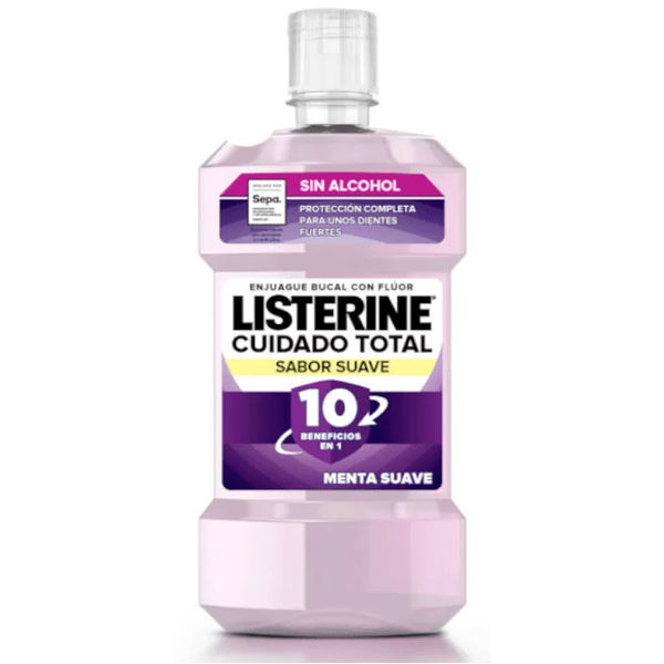 https://www.mifarma.eu/listerine-total-care-mouthwash-mild-flavor-500-ml721244649948Listerine Total Care Mild Mouthwash 500 ml<p data-start="170" data-end="808"><span style="font-weight: bold;">Listerine Total Care Mild Mouthwash 500 ml</span></p><p data-start="170" data-end="808"> Maintaining complete oral hygiene requires more than just brushing your teeth, and <strong data-start="254" data-end="293">Listerine Total Care Gentle Mouthwash</strong> is the perfect partner to achieve this goal. This mild, alcohol-free mouthwash offers <strong data-start="388" data-end="410">10 benefits in 1</strong> , providing up to <strong data-start="433" data-end="479">12 hours of germ protection</strong> and caring for your entire mouth.</p><p data-start="810" data-end="1265"> With <strong data-start="814" data-end="853">Listerine Total Care Mild Flavor</strong> , you will enjoy a complete dental cleaning:</p><p data-start="810" data-end="1265"> <span style="font-weight: bold;">Strengthens your teeth, protects your gums, fights plaque and tartar, protects your enamel, cares for the natural whiteness of your teeth, cleans between teeth, eliminates germs and keeps your breath fresh for hours</span> .</p><p data-start="1288" data-end="1450"> Listerine Total Care Mild Flavor is ideal for those looking for effective and complete cleaning, caring for the entire mouth with a pleasant and mild flavor.</p>https://assets.atida.com/transform/aac731df-3126-4275-ade6-2be6b6dd66b1/Listerine-Cuidado-Total-Enjuague-Bucal-Sabor-Suave-500-ml?io=transform:extend,width:250,height:2504.99instock6.264.1239659421488201.27Listerinehttps://www.mifarma.eu/media/catalog/product/1/b/d/7/1bd7aab8c256fc62d47ade7bcc861b60ea7c13b1_Listerine_Cuidado_Total_Enjuague_Bucal_Sabor_Suave_500_ml.png/Health and Hygiene/20% off Listerine2024-09-16T06:12:51+0000
