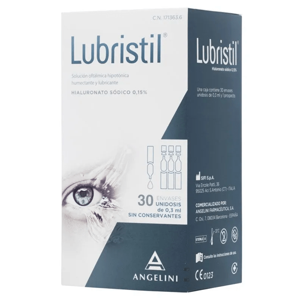 https://www.mifarma.eu/lubristil-30-single-dose-eyepiece-lubricant993028386818Lubristil 30 single dose eyepiece lubricant<p>Lubristil, for its moisturizing properties and viscoelastic, is used for lubrication and hydration of the ocular surface, in all cases of irritation and / or dryness due to alterations of the lacrimal film.</p><p> It contains no preservatives, so it can be used by users of contact lenses.</p><p> Provides instant relief and a lasting sense of well-being.</p><h3 id= w_modo-de-empleo > <b>How to use</b></h3><p> Separate a strip single-dose container. Open turning to the top without pulling. Prevent the tip of the container to come in contact with the eye.</p><h3 id= w_composiciahn > <b>Composition</b></h3><p> 1ml of solution contains 1.5mg of sodium hyaluronate, sodium chloride, disodium phosphate dodecahydrate, monohydrate monobasic sodium phosphate, purified water.</p>https://assets.atida.com/transform/95d59d7d-7ff1-4f20-ad67-b29668893ff2/Lubristil-Lubricante-Ocular-30-Monodosis?io=transform:extend,width:250,height:25011.99instock15.0510.899999203.06Lubristilhttps://www.mifarma.eu/media/catalog/product/7/9/f/9/79f90f74eff9174583cf98bb93682ab9610bce09_Lubristil_Lubricante_Ocular_30_Monodosis.png/Mini Prices/Health and Hygiene/Optics/Eye Drops and Physiological Serums/Health and Hygiene/Optics/Contact Lens Liquid and Moisturization/Health and Hygiene/Health and Hygiene/Optics2024-09-16T06:27:35+0000