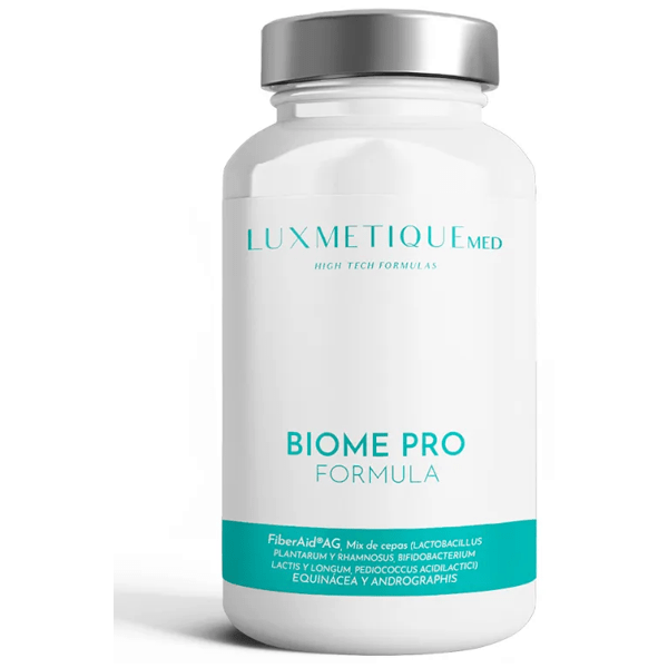 https://www.mifarma.eu/luxmetique-med-biome-pro-formula-60-capsules842287794261Luxmetique Med Biome Pro Formula 60 Capsules<p><span style="font-size: 13px; font-weight: bold;">Luxmetique Med Biome Pro Formula 60 Capsules</span></p><p> A dietary supplement designed to improve the <span style="font-weight: bold;">balance of the intestinal microbiome,</span> a fundamental aspect for the overall health of the body.</p><p> This product comes in <span style="font-weight: bold;">delayed-release capsules,</span> which allows the active ingredients to be released gradually, thus optimizing their absorption and effectiveness in the body.</p><p> <span style="font-weight: bold;">The microbiome</span> plays a crucial role in <span style="font-weight: bold;">regulating the immune system and digestive health.</span></p><p> A <span style="font-weight: bold;">proper balance of intestinal bacteria</span> not only contributes to <span style="font-weight: bold;">better digestion,</span> but also <span style="font-weight: bold;">strengthens the body's natural defenses,</span> helping to prevent infections.</p><p> Studies have shown that a healthy microbiome can positively influence the immune response, making Luxmetique Med Biome Pro an ideal ally for those seeking to maintain their well-being throughout the year.</p><p> This supplement is completely <span style="font-weight: bold;">free of gluten, lactose, added sugars and nuts</span> , making it a safe option for people with food intolerances.</p>https://assets.atida.com/transform/e06482f8-d828-4afe-8b28-14067d2aefa2/Luxmetique-Biome-Pro-Formula-60-Capsulas?io=transform:extend,width:250,height:25035.99instock39.9532.718180818182103.96Luxmetiquehttps://www.mifarma.eu/media/catalog/product/6/b/7/c/6b7c114f22e9b2cdc8ef40fdc0b7ac3101b43f26_Luxmetique_Biome_Pro_Formula_60_Capsulas.png/Vitamins and Supplements/Supplements/Digestive System/Vitamins and Supplements/Vitamins and Supplements/Prebiotics/Vitamins and Supplements/Probiotics/Vitamins and Supplements/Supplements/Last Opportunities2026-01-30T01:07:47+0000