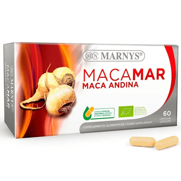https://www.mifarma.eu/macamar-andean-red-and-black-maca-bio-marnys-60-vegetable-capsules127057690342Macamar Andean Red and Black Maca BIO Marnys 60 Vegetable Capsules<p><b>Food supplement</b> based on Andean Maca, with important energizing properties, which provides the body with extra energy and helps reduce tiredness and fatigue.</p><p> Promotes physical and mental performance.</p><p> It also contributes to increasing libido in women.</p><p> <b>Suitable for vegans</b> .</p>https://assets.atida.com/transform/fd6d6b8b-d78b-4855-bd30-325a08572d0a/Marnys-Macamar-Maca-Andina-Roja-y-Negra-BIO-60-Capsulas-Vegetales?io=transform:extend,width:250,height:25014.99instock16.9513.627271727273121.96Marnyshttps://www.mifarma.eu/media/catalog/product/8/2/2/1/822187bacb8bd2eb9c8d9dc8db7aea11eb2e8437_Marnys_Macamar_Maca_Andina_Roja_y_Negra_BIO_60_Capsulas_Vegetales.png/Energizers/Vitamins and Supplements2024-09-16T05:42:22+0000