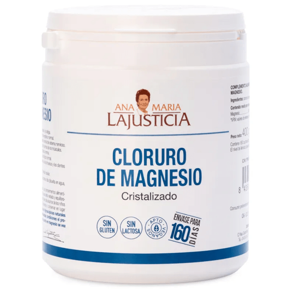 https://www.mifarma.eu/magnesium-chloride-400-g-justice 245106902588 Ana Maria Lajusticia Magnesium Chloride 400 gr <p><span style="font-weight: 700;">Ana Maria Lajusticia Magnesium Chloride 400 gr</span></p><p> A food supplement that contributes to electrolyte balance and supports the normal functioning of the nervous system.</p><p> <strong>WHAT ARE THE MAIN BENEFITS OF ANA MARIA LAJUSTICIA'S MAGNESIUM CHLORIDE?</strong></p><p> Magnesium is involved in the formation of all tissues, including those of the skeleton.</p><p> - It helps reduce tiredness and fatigue.</p><p> - It also plays a role in the formation of antibodies, enzymes, and hormones.</p><p> - In addition, it influences muscle relaxation, reducing cramps, even the heart rate and also mental work.</p><p> - It helps to maintain bones and teeth in normal condition.</p><p> - It is recommended as an aid against depression, stress and anxiety.</p><p> High laxative effect.</p><p></p><p> <strong>Suitable for vegans.</strong></p><p> It does not contain gluten.</p><p> Container for 160 days.</p> https://assets.atida.com/transform/93dd932d-047d-49d1-b81b-57e44b6ac3da/Ana-Maria-Lajusticia-Cloruro-de-Magnesio-400-gr?io=transform:extend,width:250,height:250 11.99 instock 15.16 10.899999 21 3.17 Ana Maria Lajusticia https://www.mifarma.eu/media/catalog/product/a/c/9/7/ac975618b611ee348bcb9ff162c94a5878c87d1a_Ana_Maria_Lajusticia_Cloruro_de_Magnesio_400_gr.png /Atida Cash 5% /Vitamins and Supplements/Supplements/Bones, Joints, and Muscles /Mini Prices /Vitamins and Supplements /Vitamins and Supplements/Supplements /NO MIFARMA DAYS /Up to 70% off /Mifarma Days NO /Singles' Day: Up to 70% off! 2024-09-16T05:47:40+0000