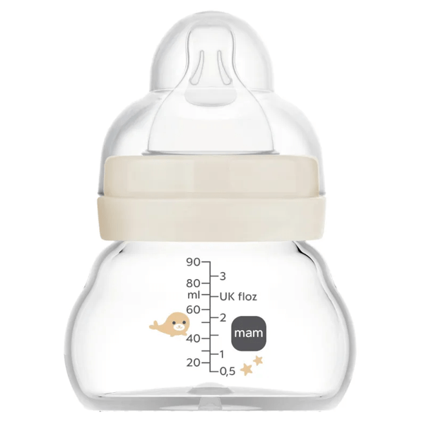 MAM Feel Good Glass Baby Bottle Extra Slow Flow Neutral Glossy 0m 90ml