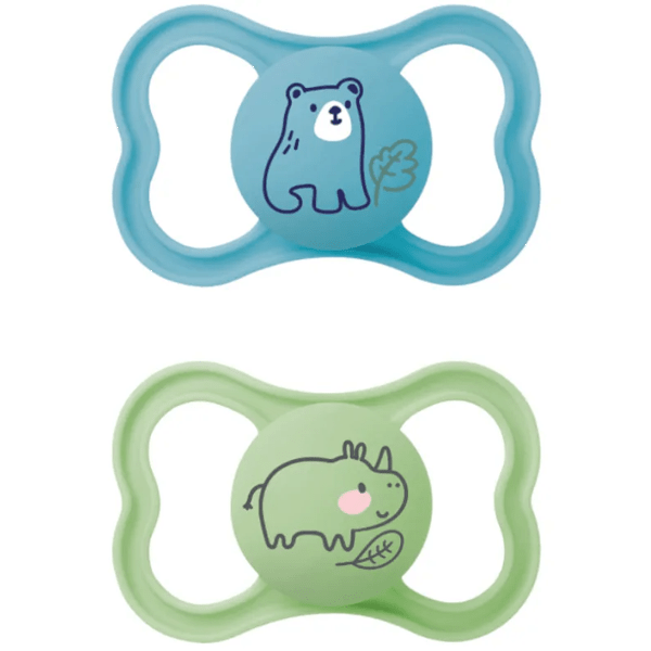Description ico-chevron-down Pacifiers with extra- soft silicone teat from the Mam Air range.