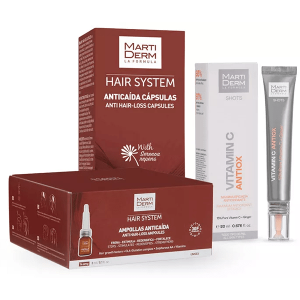 Martiderm Anti-Hair Loss Ampoules 14 units + Shots Vitamin C Antiox 20 ml + Oral Anti-Hair Loss 60 Capsules