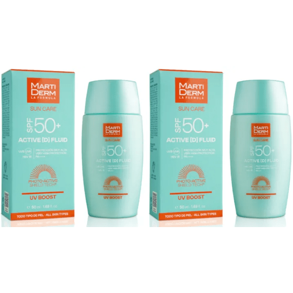 https://www.mifarma.eu/martiderm-sun-care-actived-fluid-spf50-2x50-ml 394515257116 MartiDerm Sun Care ActiveD Fluid SPF50+ 2x50 ml <p><span style="font-weight: bold;">MartiDerm Sun Care ActiveD Fluid SPF 50+ 2x50 ml<br></span></p><p> Fluid texture facial sunscreen, ideal for daily use.</p><p> Formulated with Photo-Active Shield Technology, which optimizes the concentration of filters in the formula, guaranteeing maximum protection against UVA, UVB, IR radiation and blue light from electronic devices.</p><p> It is also enriched with moisturizing and antioxidant actives, such as cocoa extract, which contribute to the recovery of the skin's barrier function.<br></p><p> Suitable for all skin types.</p> https://assets.atida.com/transform/0d666ba1-9e4a-4758-8a0e-29df4675f723/MartiDerm-Sun-Care-ActiveD-Fluid-SPF50-2x50-ml?io=transform:extend,width:250,height:250 34.99 instock 59.98 28.917354371901 42 24.99 Martiderm https://www.mifarma.eu/media/catalog/product/5/7/1/e/571e57ef474de8db66d902aa55367be9cd7b6510_MartiDerm_Sun_Care_ActiveD_Fluid_SPF50_2x50_ml.png /Savings Packs/Health and Hygiene Packs /Savings Packs /Health and Hygiene /Health and Hygiene/Sun Protection and Cream /Health and Hygiene/Sun Protection and Cream/Facial Sun Protection /Mini Prices /50% off 2nd unit Martiderm 2026-03-03T00:55:49+0000