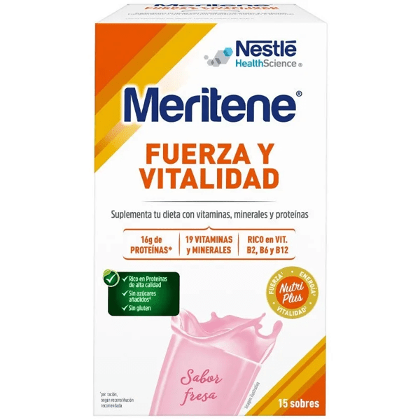 https://www.mifarma.eu/meritene-powder-strawberry-15-envelopes-30-grams564551744459Meritene Strength and Vitality Strawberry Powder 15 Sachets<p><strong>Meritene Strawberry Powder Strength and Vitality 15 Sachets 30 grams</strong></p><p> Food supplement indicated to <span style="font-weight: bold;">help complete nutritional deficiencies.</span></p><p> With <span style="font-weight: bold;">19 vitamins and minerals</span> that help <span style="font-weight: bold;">reduce tiredness and fatigue.</span></p><p> <span style="font-weight: bold;">Its high-quality proteins</span> contribute to the <span style="font-weight: bold;">development and maintenance of muscle mass.</span></p><p> It is a nutritional supplement with a high content of proteins, energy, vitamins and minerals.</p><p> Indicated for lack of appetite, if you feel tired, if you are weak or convalescing, if you are pregnant, if you do sports activities, if your nutrition is unbalanced or insufficient.</p><p></p><p> With a pleasant <span style="font-weight: bold;">fresh flavor.</span></p><p> <span style="font-weight: bold;">It is low in fat and cholesterol free.</span></p><p> <span style="font-weight: bold;">Suitable for diabetics.</span></p><p> <span style="font-weight: bold;">Gluten and sucrose free.</span></p>https://assets.atida.com/transform/356ea9da-7adb-46fc-a658-7e6a754bd00c/Meritene-Fuerza-y-Vitalidad-Polvo-Fresa-15-Sobres?io=transform:extend,width:250,height:25020.99instock24.1119.081817181818133.12Meritenehttps://www.mifarma.eu/media/catalog/product/7/6/8/6/768658c12f5415aadf946ed595fdcbc57334596a_Meritene_Fuerza_y_Vitalidad_Polvo_Fresa_15_Sobres.png/Nutrition/Feeding/cyber_monday_pt_int/Nutrition/Nutrition/Feeding/Drinks and Juices/NO MIFARMA DAYS/Up to 70% off/Vitamins and Supplements/Mifarma Days NO/Singles' Day: Up to 70% off!2024-09-16T06:03:37+0000