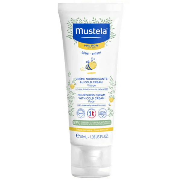 Mustela's Moisturizing Face Cream , enriched with Cold Cream and Organic Beeswax , has been specially formulated to deeply nourish the dry skin of babies and children , from birth onwards*. Its rich, melt-in texture is easily absorbed , leaving skin soft, protected and comfortable all day long.