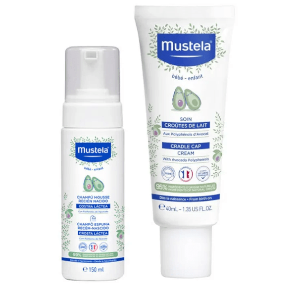 The Mustela Savings Pack Newborn Mousse Shampoo 150ml + Cradle Cap Cream 40ml is specifically designed for the care of the scalp of newborns and babies, providing an effective and gentle solution against cradle cap .