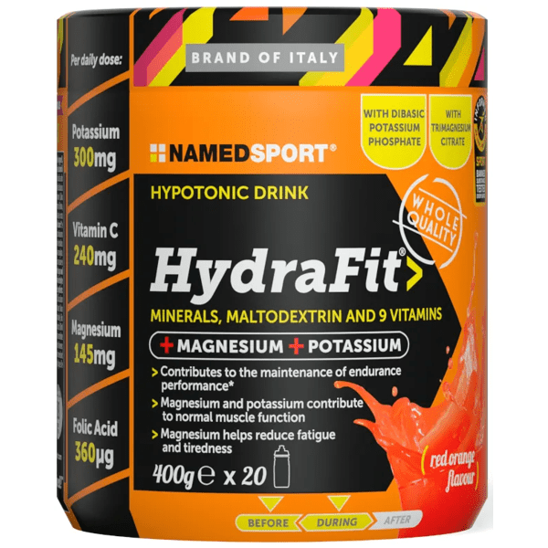 https://www.mifarma.eu/namedsport-hydrafit-orange-red-400-gr941527455204NamedSport HydraFit Orange Red 400 gr<p><span style="font-size: 13px; font-weight: bold;">NamedSport HydraFit Orange Red 400 gr</span></p><p> <span style="font-weight: bold;">HydraFit</span> is a <span style="font-weight: bold;">hypotonic electrolyte drink</span> formulated to meet the <span style="font-weight: bold;">hydration needs of athletes and active people.</span></p><p> This unique blend of <span style="font-weight: bold;">mineral salts, maltodextrin, and vitamins</span> is designed to <span style="font-weight: bold;">replenish the electrolytes that the body loses through excessive sweating</span> during intense exercise.</p><p> With an <span style="font-weight: bold;">osmolarity of 190 mOsm/l,</span> HydraFit ensures <span style="font-weight: bold;">rapid absorption and efficient rehydration</span> , which is essential to maintain optimal performance.</p><p> <span style="font-weight: bold;">The magnesium and potassium</span> present in its composition are essential for proper <span style="font-weight: bold;">muscle function,</span> helping to <span style="font-weight: bold;">reduce the effects of fatigue and improving efficiency during training.</span></p><p> Adequate intake of these minerals can contribute to the <span style="font-weight: bold;">prevention of cramps and muscle pain,</span> allowing users to train more comfortably and effectively.</p><p> In addition, <span style="font-weight: bold;">maltodextrin</span> acts as a <span style="font-weight: bold;">source of fast-release energy,</span> providing the necessary boost to cope with prolonged exercise sessions.</p><p> In conclusion, HydraFit not only helps <span style="font-weight: bold;">replenish lost mineral salts</span> , but also supports <span style="font-weight: bold;">recovery and improves overall physical performance.</span></p><p> Ideal for consumption up to three times a day, it is the perfect solution for those looking to optimize their hydration and energy during physical activity.</p>https://assets.atida.com/transform/9faf3739-acac-448e-a4f2-d214114e7df2/NamedSport-HydraFit-Naranja-Roja-400-gr?io=transform:extend,width:250,height:2508.99instock10.998.1727262727273182Namedsporthttps://www.mifarma.eu/media/catalog/product/4/4/6/e/446e60457c48a0b353891f7179753b5a08dc0c5c_NamedSport_HydraFit_Naranja_Roja_400_gr.png/Nutrition/Nutrition/Sports and Fitness/Nutrition/Sports and Fitness/Isotonic and Recovery/Vitamins and Supplements/Vitamins and Supplements/Minerals/Vitamins and Supplements/Supplements/Mifarma Days NO2025-12-04T01:12:56+0000