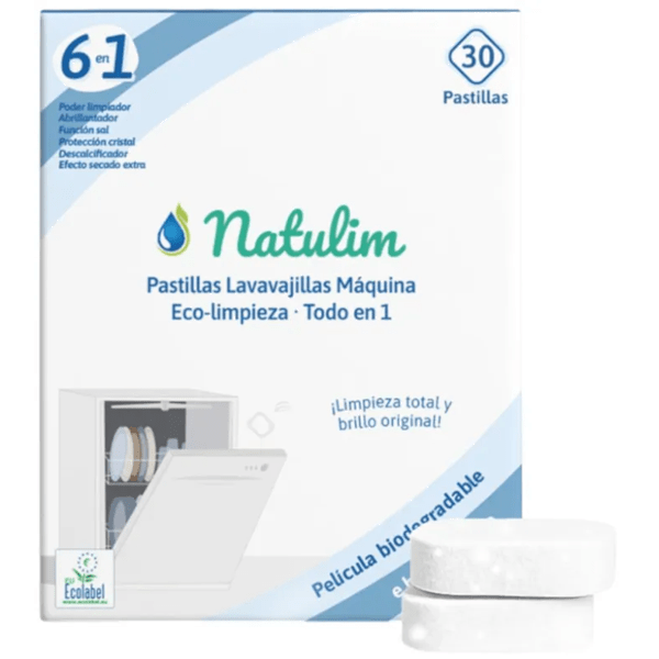 https://www.mifarma.eu/natulim-dishwasher-tablets-for-6-in-1-machines-eco-30-tablets287383415613Natulim Dishwasher Tablets for 6-in-1 Machines ECO 30 Tablets<p><span style="font-weight: bold;">Natulim Dishwashing Liquid 30 Tablets</span></p><p> Ideal for achieving <span style="font-weight: bold;">exceptional cleaning in every wash cycle.</span></p><p> Each tablet combines several essential functions that guarantee superior performance in the dishwasher, simplifying the washing process and taking care of the dishes at the same time.</p><p> With their powerful cleaning effect, these tablets <span style="font-weight: bold;">effectively remove grease and food residue,</span> ensuring that every <span style="font-weight: bold;">plate, glass and utensil is spotless</span> .</p><p> In addition, its formulation includes a <span style="font-weight: bold;">brightener</span> that provides an original shine, eliminating the need to use additional products.</p><p> This not only <span style="font-weight: bold;">optimizes cleaning time</span> , but also <span style="font-weight: bold;">reduces the consumption of chemicals</span> in the home.</p><p> One of the outstanding features of these tablets is <span style="font-weight: bold;">their salt function,</span> which helps <span style="font-weight: bold;">prevent limescale buildup in the dishwasher</span> , prolonging its lifespan.</p><p> This is especially important in areas with hard water, where limescale buildup can be a common problem. Its formula also includes a <span style="font-weight: bold;">descaler</span> that protects the machine's internal components, ensuring long-lasting performance.</p><p> Eco Tablets are designed to <span style="font-weight: bold;">protect delicate utensils and ensure they remain in perfect condition</span> , preventing marks or damage.</p><p> Finally, its <span style="font-weight: bold;">extra drying effect</span> ensures that the dishes come out completely dry, ready to be stored or used without the need for additional drying.</p>https://assets.atida.com/transform/f20a827f-a56d-4ecb-bff2-068420944705/Natulim-Pastillas-Lavavajillas-Maquina-6-en-1-ECO-30-Pastillas?io=transform:extend,width:250,height:2508.95instock8.957.39669321487600Natulimhttps://www.mifarma.eu/media/catalog/product/3/0/8/0/30806f42289d6438b7ca8d16f21356445ab2dbc0_Natulim_Pastillas_Lavavajillas_Maquina_6_en_1_ECO_30_Pastillas.png/Health and Hygiene/Home/Dishwashers/Health and Hygiene/Health and Hygiene/Home2025-12-23T00:51:40+0000