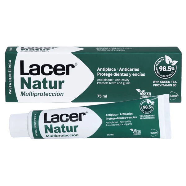 https://www.mifarma.eu/natural-toothpaste-lacer-natur-0-ml567853859282Lacer Natur Toothpaste 75 ml<p><span style="font-weight: 700;">Lacer Natur Toothpaste 75 ml</span></p><p> <strong data-start="89" data-end="127">Lacer Natur Toothpaste 75 ml</strong> is a toothpaste formulated with plant extracts of natural origin that <span style="font-weight: bold;">helps to effectively protect against cavities and prevent the formation of dental plaque.</span></p><p> <span style="font-weight: bold;">Its formula helps maintain strong teeth and healthy gums</span> , thanks to the action of Green Tea and Provitamin B5, which help to care for and protect oral health.</p><p> It contains natural mint, which <span style="font-weight: bold;">provides a long-lasting feeling of freshness.</span> <span style="font-weight: bold;">It is gluten-free and suitable for vegans</span> , making it ideal for those seeking more natural and responsible oral care.<strong></strong></p>https://assets.atida.com/transform/cd75b7b7-cca9-466f-aaf5-7b73bbe15a32/Lacer-Natur-Pasta-Dentifrica-75-ml?io=transform:extend,width:250,height:2504.99instock8.794.1239659421488433.8Lacerhttps://www.mifarma.eu/media/catalog/product/6/0/5/1/6051fd10cb2e8289db02fa0ffc1bf5810ce067c9_Lacer_Natur_Pasta_Dentifrica_75_ml.png/Health and Hygiene/Toothpaste/Health and Hygiene2024-09-16T06:03:47+0000