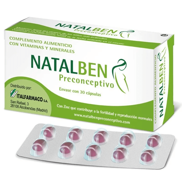 https://www.mifarma.eu/ne-preconception-30-capsules853774879447Natalben Preconceptive 30 Capsules<p><span style="font-weight: 700;">Natalben Preconceptive 30 Capsules</span></p><p> <strong>A dietary supplement</strong> that helps optimize a woman's normal ability to reproduce.<br></p><p> It affects both fertility and the early stages of pregnancy.</p><p> It helps <strong>increase the chances of a woman getting pregnant</strong> .</p><p> It contains <span style="font-weight: bold;">Vitamin D5</span> , which is involved in normal cell division.</p><p> Its formula also contains <span style="font-weight: bold;">Zinc</span> , which is involved in normal fertility and reproduction processes, <span style="font-weight: bold;">Iodine</span> , which promotes proper fetal growth, <span style="font-weight: bold;">Folic Acid, and Vitamin B12</span> .</p><p> Folic acid intake optimizes the microenvironment for oocyte maturation, improving the chances of conception.</p><p> <strong>It does not contain gluten</strong> , so it is suitable for women with celiac disease.</p><p> If you wish, you can download the technical data sheet for this product here: <a href="https://www.mifarma.es/media/pdfs/PROSPECTOS/NATALBEN_PRECONCEPTIVO.pdf" style="font-weight: bold;">NATALBEN PRECONCEPTIVE</a></p>https://assets.atida.com/transform/e7168da6-5f39-4072-94b5-f4c1d75c658c/Natalben-Preconceptivo-30-Capsulas?io=transform:extend,width:250,height:2508.99instock8.998.172726272727300Natalbenhttps://www.mifarma.eu/media/catalog/product/6/2/a/5/62a52d215b4f37e6bc4fc3595f5594c321236c67_Natalben_Preconceptivo_30_Capsulas.png/Mini Prices/Health and Hygiene/Health and Hygiene/Women’s Health/Vitamins and Supplements/Vitamins and Supplements/Minerals/Vitamins and Supplements/Vitamins (A-K)/Health and Hygiene/Women’s Health/Fertility Supplements2024-09-16T06:20:12+0000