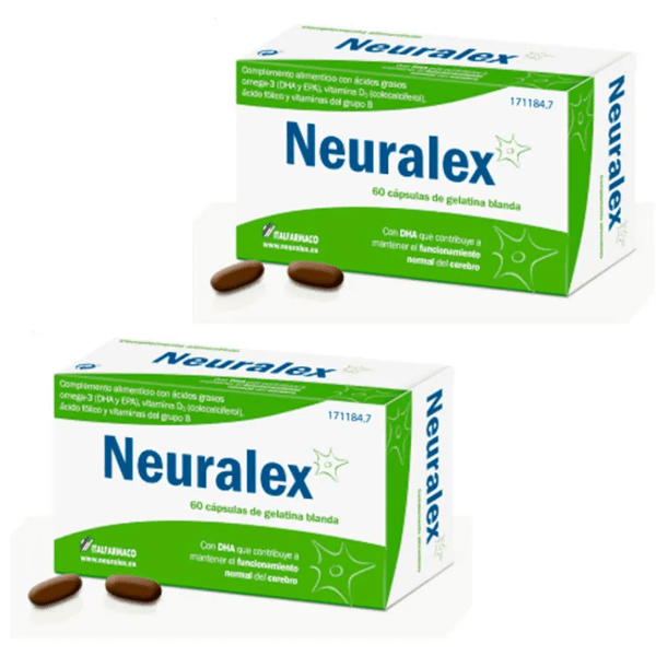 https://www.mifarma.eu/neuralex-2x60-capsules876910451903Neuralex 2x60 Capsules<p><span style="font-weight: bold;"></span></p><p><span style="font-weight: 700;">Neuralex 2x60 Capsules</span></p><p> <span style="font-weight: bold;">Savings pack of 2 boxes of Neuralex</span> , a food supplement containing <span style="font-weight: bold;">omega-3 fatty acids</span> (DHA and EPA) and <span style="font-weight: bold;">vitamins B12 and B6 and folic acid</span> that helps maintain <strong>normal brain function</strong> .</p><p> <span style="font-weight: bold;">BENEFITS</span></p><p> - It promotes <span style="font-weight: bold;">concentration</span> , <span style="font-weight: bold;">memory</span> , and the ability to think.</p><p> - Suitable for <strong>adults aged 50 and over</strong> who show mild memory loss.</p><p> - Each <span style="font-weight: bold;">Neuralex</span> capsule contains among its components 900 mg of omega 3 fatty acids, vitamin B6, vitamin B9, vitamin B12 and folic acid.</p><p> - It also contributes to reducing fatigue and tiredness.</p><p></p><p> - Sugar-free and gluten-free.</p>https://assets.atida.com/transform/de40ff1d-a41b-43da-99d1-2af9f3b02dd9/Neuralex-2x60-Capsulas?io=transform:extend,width:250,height:25029.99instock32.827.26363536363692.81Italfarmacohttps://www.mifarma.eu/media/catalog/product/e/1/0/4/e10448d486673f12fbcb837318389162a113032b_Neuralex_2x60_Capsulas.png/Mini Prices/Savings Packs/Vitamins and Supplements Packs/Savings Packs/Vitamins and Supplements/Vitamins and Supplements/Minerals/Vitamins and Supplements/Supplements/Vitamins and Supplements/Vitamins (A-K)2026-02-17T01:18:00+0000