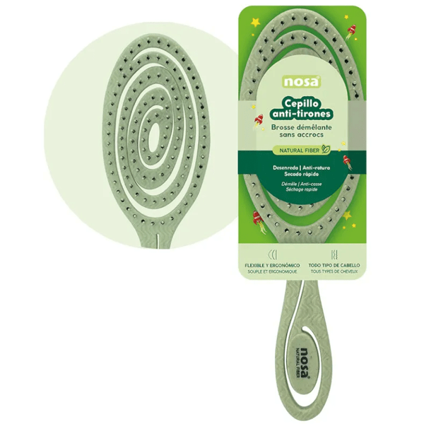 https://www.mifarma.eu/nosa-green-anti-pull-brush491379240764Nosa Green Anti-Pull Brush<p><span style="font-weight: bold;">Nosa Green Anti-Pull Brush</span></p><p></p><ul></ul><p></p><p> The tug-free detangling brush is presented as an essential hair care tool, designed to offer a smooth and efficient styling experience.</p><p> Thanks to its <span style="font-weight: bold;">fine, flexible bristles</span> , this brush is <span style="font-weight: bold;">capable of detangling all types of hair</span> , thus avoiding the pain and damage that other brushes usually cause.</p><p> This feature makes it an <span style="font-weight: bold;">ideal choice for both curly and straight hair</span> , ensuring tug-free detangling. The Express Brush system, which <span style="font-weight: bold;">incorporates long bristles</span> , allows you to cover all layers of your hair in a single stroke, significantly reducing the time needed to style.</p><p> This is especially <span style="font-weight: bold;">useful for those with thick or long hair</span> , which often requires more effort and time to style. <span style="font-weight: bold;">The spiral design allows for greater ventilation during use</span> , which contributes to faster hair drying. This feature is essential for those looking to optimize their hair care routine, especially in hot climates or when using a hairdryer.</p><p> Additionally, the <span style="font-weight: bold;">flexible brush head</span> adapts to the shape of your head, ensuring maximum softness on the scalp.</p><p> With a focus on sustainability, this brush is <span style="font-weight: bold;">made from wheat fiber, a 100% biodegradable material</span> . This choice of materials not only respects the environment but also ensures that the product is a conscious and responsible choice for personal care.</p><p> The commitment to sustainability in brush manufacturing aligns with current market trends that prioritize eco-friendly and environmentally responsible products.</p>https://assets.atida.com/transform/c2dc6bcf-8b54-4a0b-b138-572735201a27/Nosa-Cepillo-Antitirones-Verde?io=transform:extend,width:250,height:2504.99outofstock6.174.1239659421488191.18Nosahttps://www.mifarma.eu/media/catalog/product/6/a/9/8/6a98332c3bbfd2050081d93b4ea443449ad1408f_Nosa_Cepillo_Antitirones_Verde.png/Health and Hygiene/Hair Care/Accessories/Health and Hygiene/Health and Hygiene/Hair Care2025-10-06T23:59:14+0000