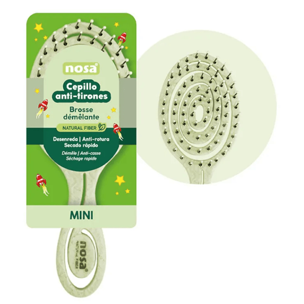 https://www.mifarma.eu/nosa-mini-anti-pull-brush-green219579268181Nosa Mini Anti-Pull Brush Green<p><span style="font-weight: bold;">Nosa Mini Anti-Pull Brush Green</span></p><p> The tug-free detangling brush is an essential haircare tool, designed to offer a smooth and efficient styling experience. This mini version allows you to carry it in your backpack, purse, or suitcase without taking up much space.</p><p> Thanks to its <span style="font-weight: bold;">fine, flexible bristles</span> , this brush is <span style="font-weight: bold;">capable of detangling all types of hair</span> , thus avoiding the pain and damage that other brushes usually cause.</p><p> This feature makes it an <span style="font-weight: bold;">ideal choice for both curly and straight hair</span> , ensuring tug-free detangling. The Express Brush system, which <span style="font-weight: bold;">incorporates long bristles</span> , allows you to cover all layers of your hair in a single stroke, significantly reducing the time needed to style.</p><p> This is especially <span style="font-weight: bold;">useful for those with thick or long hair</span> , which often requires more effort and time to style. <span style="font-weight: bold;">The spiral design allows for greater ventilation during use</span> , which contributes to faster hair drying. This feature is essential for those looking to optimize their hair care routine, especially in hot climates or when using a hairdryer.</p><p> Additionally, the <span style="font-weight: bold;">flexible brush head</span> adapts to the shape of your head, ensuring maximum softness on your scalp.</p><p> With a focus on sustainability, this brush is <span style="font-weight: bold;">made from wheat fiber, a 100% biodegradable material</span> . This choice of materials not only respects the environment but also ensures that the product is a conscious and responsible choice for personal care.</p><p> The commitment to sustainability in brush manufacturing aligns with current market trends that prioritize eco-friendly and environmentally responsible products.</p>https://assets.atida.com/transform/5fceea6b-5e97-4349-972a-3f61147de61f/Nosa-Mini-Cepillo-Antitirones-Verde?io=transform:extend,width:250,height:2502.99outofstock3.942.4710733801653240.95Nosahttps://www.mifarma.eu/media/catalog/product/b/0/6/3/b06368e76ce32fa339257509afb72b5f4224e579_Nosa_Mini_Cepillo_Antitirones_Verde.png/Health and Hygiene/Hair Care/Accessories/Health and Hygiene/Health and Hygiene/Hair Care2025-10-06T23:49:48+0000