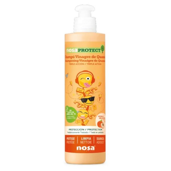 https://www.mifarma.eu/nosa-shampoo-quassia-vinegar-peach-0m-250-ml251474128705Nosa Shampoo Quassia Vinegar Peach +0m 250 ml<p><span style="font-weight: bold;">Nosa Shampoo Quassia Vinegar Peach +0m 250 ml</span></p><p> The 250ml Peach Quassia Vinegar Shampoo is an <span style="font-weight: bold;">exceptional choice for those seeking effective and gentle hair care</span> . <span style="font-weight: bold;">Its unique formula combines Quassia Vinegar and Dimethicone, providing a deep cleanse that not only protects hair but also softens it, keeping it in optimal condition.</span></p><p> <span style="font-weight: bold;">Quassia Vinegar is known for its ability to keep lice away</span> , making it an excellent choice for daily hair protection, especially in environments where exposure to these parasites may be higher.</p><p> <span style="font-weight: bold;">Dimethicone, for its part, acts by forming an insulating film on the hair, which facilitates detangling and provides a silky, shiny finish</span> .</p><p> This shampoo has been <span style="font-weight: bold;">designed to be used daily</span> , which is <span style="font-weight: bold;">ideal for the whole family</span> , including the little ones, as it is <span style="font-weight: bold;">suitable for use from birth</span> .</p><p> Nosaprotect Shampoo not only stands out for its effectiveness, but also for its <span style="font-weight: bold;">pleasant peach scent</span> , which masks the characteristic smell of natural ingredients, making the washing experience pleasant.</p><p> In addition, <span style="font-weight: bold;">it has been pediatrically and dermatologically tested, guaranteeing its safety on sensitive and atopic skin</span> .</p><p> <span style="font-weight: bold;">With continued use, it ensures clean, protected, and soft-to-the-touch hair</span> , making it an essential ally in your hair care routine.</p>https://assets.atida.com/transform/79841e7b-5f21-4ec1-9e33-be401d595277/Nosa-Champu-Vinagre-de-Quassia-Melocoton-250-ml?io=transform:extend,width:250,height:2506.99outofstock8.25.7768585041322151.21Nosahttps://www.mifarma.eu/media/catalog/product/6/3/2/a/632acbaa45644435522a5dbac79c904f7be2bf37_Nosa_Champu_Vinagre_de_Quassia_Melocoton_250_ml.png/Health and Hygiene/Hair Care/Lice Treatment/Health and Hygiene/Health and Hygiene/Hair Care2025-10-06T23:50:57+0000