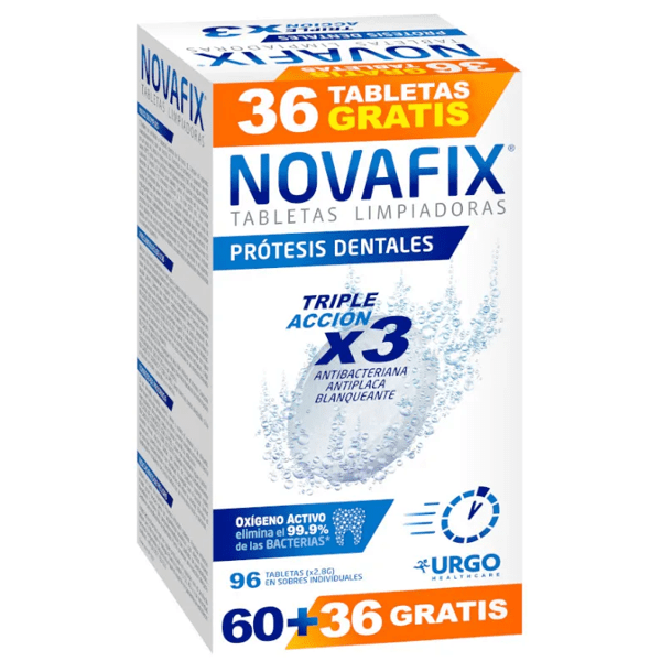 https://www.mifarma.eu/novafix-triple-action-antibacterial-cleaning-tablets-60-36-free-tablets383443237336Novafix Triple Action Antibacterial Cleaning Tablets 60+36 FREE Tablets<p data-start="88" data-end="456">Novafix Triple Action Antibacterial Cleaning Tablets 60+36 FREE Tablets</p><p data-start="88" data-end="456"> <strong data-start="92" data-end="154">Novafix Triple Action antibacterial cleaning tablets</strong> are specially designed to provide a <strong data-start="207" data-end="258">deep and effective cleaning of dentures</strong> , helping to keep them hygienic, fresh, and looking natural. Thanks to their advanced formula that releases <strong data-start="370" data-end="388">active oxygen</strong> , they work by removing stains, plaque, and accumulated residue.</p><p data-start="458" data-end="666"> Its <strong data-start="468" data-end="478">3-in-1</strong> action not only cleans, but also helps <strong data-start="520" data-end="554">prevent tartar buildup</strong> and maintain the <strong data-start="571" data-end="612">natural shine and color of the prosthesis</strong> , contributing to a healthier and more cared-for smile.</p><p data-start="668" data-end="699"> <strong data-start="668" data-end="699">Main features:</strong></p><p data-start="668" data-end="699"> <strong data-start="703" data-end="728">- Triple Action formula</strong> to clean, remove stains and prevent limescale.</p><p data-start="668" data-end="699"> <strong data-start="785" data-end="803">- Active oxygen</strong> that helps eliminate bacteria and dental plaque.</p><p data-start="668" data-end="699"> - Maintains the <strong data-start="867" data-end="893">shine and natural color</strong> of the dental prosthesis.</p><p data-start="668" data-end="699"> - Effective cleaning that helps maintain <strong data-start="962" data-end="986">optimal oral hygiene</strong> .</p><p data-start="668" data-end="699"> <strong data-start="992" data-end="1010">- Economy format</strong> with <strong data-start="1015" data-end="1042">60 tablets + 36 free</strong> .</p><p data-start="1045" data-end="1059"> <strong data-start="1045" data-end="1059">Benefits:</strong></p><p data-start="1045" data-end="1059"> - Helps keep dentures <strong data-start="1093" data-end="1135">clean, fresh and free of bacteria</strong> .</p><p data-start="1045" data-end="1059"> - Reduces stains and residue that can affect the aesthetics of the teeth.</p><p data-start="1045" data-end="1059"> - Promotes <strong data-start="1232" data-end="1255">better oral hygiene</strong> and greater comfort in daily use.</p><p data-start="1045" data-end="1059"> - It allows you to enjoy <strong data-start="1317" data-end="1364">eating, talking and smiling with greater confidence</strong> .</p>https://assets.atida.com/transform/e1ad7c01-c9b4-4fd3-929b-9dc871fecb74/Novafix-Tabletas-Limpiadoras-Antibacterianas-Triple-Accion-60-36-Tabletas-GRATIS?io=transform:extend,width:250,height:2508.99instock11.17.4297510661157192.11Novafixhttps://www.mifarma.eu/media/catalog/product/c/8/2/a/c82a8c25ee0933111e0a4a7186e2ac310f825250_Novafix_Tabletas_Limpiadoras_Antibacterianas_Triple_Accion_60_36_Tabletas_GRATIS.png/Health and Hygiene/Dental and Oral Care/Dentures Care/Health and Hygiene/Health and Hygiene/Dental and Oral Care/15% off Novafix2026-03-12T07:56:12+0000
