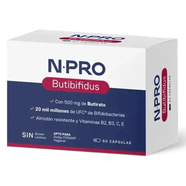 https://www.mifarma.eu/npro-butibifus-60-capsules329783528819NPRO Butibifus 60 Capsules<p><span style="font-weight: bold;">NPRO Butibifus 60 Capsules</span></p><p> <span style="font-weight: 700;">NPRO Butibifus</span> is a food supplement designed to <span style="font-weight: bold;">promote intestinal health,</span> combining a powerful formula that includes <span style="font-weight: bold;">500 mg of butyrate and 20 billion CFU of Bifidobacteria.</span></p><p> These beneficial bacteria, supported by more than 10 scientific studies, are fundamental to the <span style="font-weight: bold;">balance of the intestinal microbiota and the production of butyrate,</span> a short-chain fatty acid that acts as <span style="font-weight: bold;">an energy source for the cells of the colon.</span></p><p> <span style="font-weight: bold;">Butyrate</span> is produced by the fermentation of dietary fiber by intestinal bacteria and plays a vital role in <span style="font-weight: bold;">maintaining the integrity of the intestinal mucosa.</span></p><p> This fatty acid not only provides <span style="font-weight: bold;">energy to the cells of the colon,</span> but also contributes to the <span style="font-weight: bold;">regulation of the immune system and the reduction of inflammation in the gut.</span></p><p> The inclusion of <span style="font-weight: bold;">resistant starch type II</span> in the formulation acts as a <span style="font-weight: bold;">prebiotic,</span> promoting the <span style="font-weight: bold;">growth and activity of Bifidobacteria</span> .</p><p> In addition, <span style="font-weight: bold;">vitamins B2, B3, C, and E</span> provide <span style="font-weight: bold;">antioxidant properties and help protect cells from oxidative damage</span> , providing a comprehensive approach to gut health.</p><p> To ensure the active ingredients effectively reach the colon, <span style="font-weight: 700;">NPRO Butibifus</span> uses <span style="font-weight: bold;">delayed-release capsules,</span> allowing the components to be released in a controlled manner precisely where they are needed. This maximizes their effectiveness and ensures you reap their full benefits.</p>https://assets.atida.com/transform/43664e84-0ca7-4d6e-9c36-e2c9924c4651/NPRO-Butibifus-60-Capsulas?io=transform:extend,width:250,height:25028.99instock32.5926.354544454545113.6NPROhttps://www.mifarma.eu/media/catalog/product/4/a/d/c/4adc420a88df522a11dd81a16ba5f73e24276f11_NPRO_Butibifus_60_Capsulas.png/Vitamins and Supplements/Supplements/Digestive System/Vitamins and Supplements/Vitamins and Supplements/Prebiotics/Vitamins and Supplements/Supplements/Vitamins and Supplements/Vitamins (A-K)2025-10-14T23:52:30+0000
