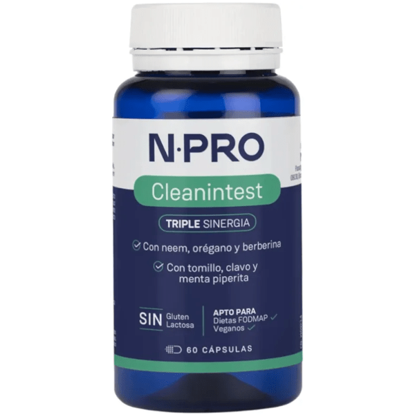 https://www.mifarma.eu/npro-cleanintest-60-capsules342196367510NPRO Cleanintest 60 Capsules<p><span style="font-weight: bold;">NPRO Cleanintest 60 Capsules</span></p><p> <span style="font-weight: 700;">NPRO Cleanintest</span> is a product designed with a <span style="font-weight: bold;">careful selection of plants and plant extracts</span> that have been historically used for their <span style="font-weight: bold;">beneficial properties in the intestine</span> .</p><p> This dietary supplement is presented as a natural alternative to conventional treatments, which sometimes require the use of broad-spectrum antibiotics, which can alter intestinal flora and cause unwanted side effects.</p><p> The plants used have an <span style="font-weight: bold;">antimicrobial effect</span> , which means they can help <span style="font-weight: bold;">combat the proliferation of pathogenic bacteria and fungi,</span> such as <span style="font-weight: bold;">candidiasis,</span> which affect <span style="font-weight: bold;">digestive health.</span></p><p> This product is especially beneficial for people experiencing conditions such as <span style="font-weight: bold;">small intestinal bacterial overgrowth (SIBO) or any type of parasitosis</span> , providing a natural approach to restoring intestinal balance.</p><p> Regular use of <span style="font-weight: 700;">NPRO Cleanintest</span> not only <span style="font-weight: bold;">boosts the body's immune response,</span> but also promotes a <span style="font-weight: bold;">balanced intestinal flora,</span> essential for <span style="font-weight: bold;">good digestion and optimal health.</span></p><p> Studies have shown that maintaining a healthy gut is essential for preventing various diseases and improving overall well-being.</p>https://assets.atida.com/transform/24275bf8-e3a4-4537-a5c4-25f831f99515/NPRO-Cleanintest-60-Capsulas?io=transform:extend,width:250,height:25019.99instock22.5218.172726272727112.53NPROhttps://www.mifarma.eu/media/catalog/product/f/4/5/c/f45ce94a97344126c07bde6396d3bcb029b6e484_NPRO_Cleanintest_60_Capsulas.png/Vitamins and Supplements/Supplements/Digestive System/Vitamins and Supplements/Vitamins and Supplements/Supplements2025-10-14T23:52:56+0000