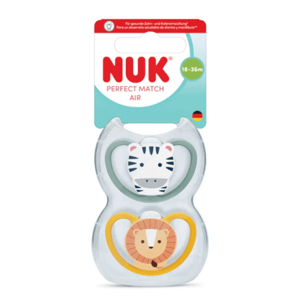 Nuk Pacifier Perfect Macht Air Silicone Zebra/Lion 18-36m 2 units