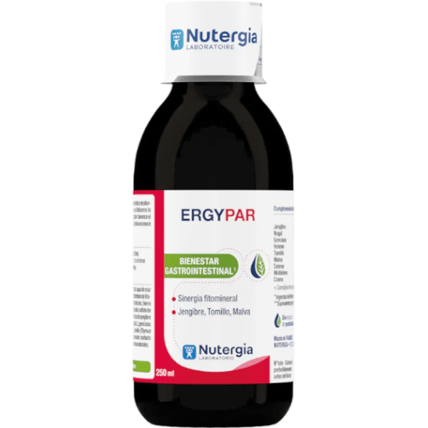 https://www.mifarma.eu/nutergia-ergypar-250-ml592713759628Nutergia Ergypar 250 ml<p>Food supplement prepared by Laboratorios Nutergia.</p><p> In its composition we can find Ginger, Walnut Gentian, Thyme, Hellenium, Mallow and Trace Elements.</p><p> These ingredients favor digestive processes. While walnut improves the body s defenses against external agents.</p><p> The trace elements of marine origin incorporated in this complement, especially selenium, protect the cells against oxidative deterioration.</p><h3 id= w_modo-de-empleo > <b>How to use</b></h3><p> Ingesting 10 to 20 ml per day dissolved in half a glass of water (approximately 75 ml), it is preferably recommended to do so outside of meals.</p><p> Shake well before drinking.</p><h3 id= w_composiciahn > <b>Composition</b></h3><p> Filtering clayey water and contracting seawater, stabilizers: natural glycerin: ginger extract (Zingiber officinale), walnut (Juglans regia), gentian (Gentuana lutea); helenium (Inula helenium), thyme (Thymus vulgaris) and mallow (Malva sylvestris), natural aroma, preservative: potassium sorbate; acidifier: lactic acid, sodium selenite.</p><p><br /></p><p><br /></p>https://assets.atida.com/transform/07ec1355-0f62-4af5-881a-b7881193bc39/Nutergia-Ergypar-250ml?io=transform:extend,width:250,height:25018.99instock22.7417.263635363636163.75Nutergiahttps://www.mifarma.eu/media/catalog/product/8/7/1/f/871f2ae15ca7e219240eb1f743690bf5f3ecd3a2_Nutergia_Ergypar_250ml.png/Vitamins and Supplements/Vitamins and Supplements/Multivitamins/Vitamins and Supplements/Supplements2024-09-16T06:05:09+0000