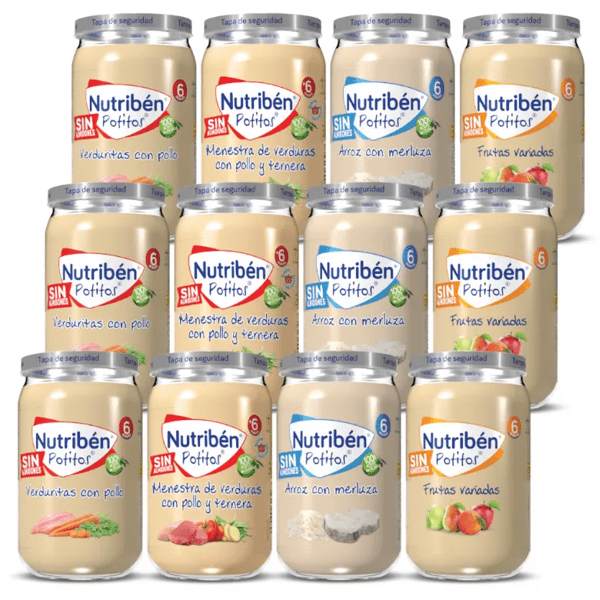 Nutribén Assorted Potitos Chicken, Veal and Chicken, Hake and Fruits +6m 12 units