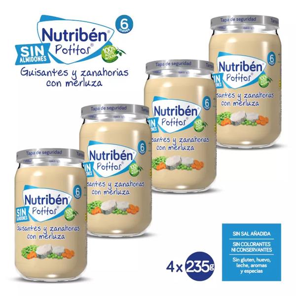 Nutribén Supreme Potito of Hake with Peas and Carrots +6m 4x235 gr