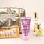 This beautiful gold toiletry bag contains everything you need for a complete beauty ritual, consisting of four essential products: